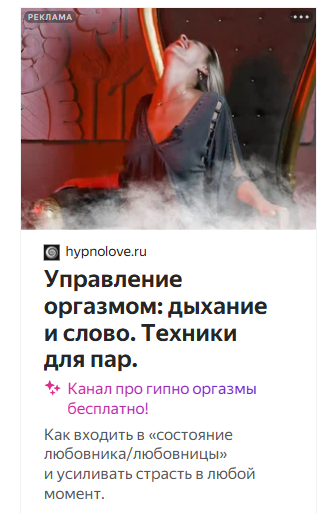 Настроили показы на мужские сайты: психология отношений, фитнес, саморазвитие, «сила мужчины». Креативы с заголовками: «Удиви её оргазмом», «Техника гипнооргазма», «Стань любовником, которого помнят».